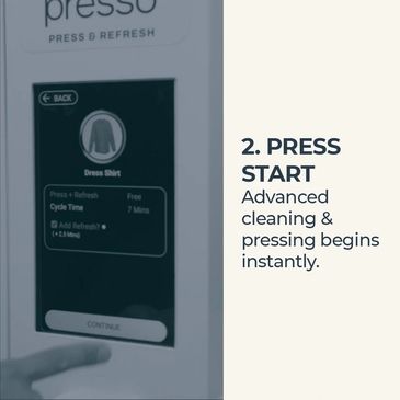Introducing Presso — the innovative system that refreshes garments in just 5 minutes while delivering 95% profit margins. Small enough to fit in just 15 square feet, yet powerful enough to transform your business.
